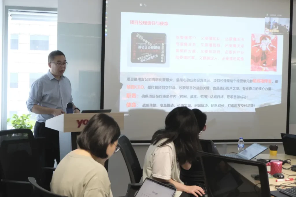 The training focused on three key objectives: “Fast Go-Live, Quick Results, and Optimal Costs.” It provided an in-depth explanation of the logical framework and project implementation practices of the YonBIP Intelligent Delivery Methodology 2.0. Mr. Chi Pengwei illustrated, with practical case studies, how the concept of intelligent delivery can achieve highly efficient project execution.