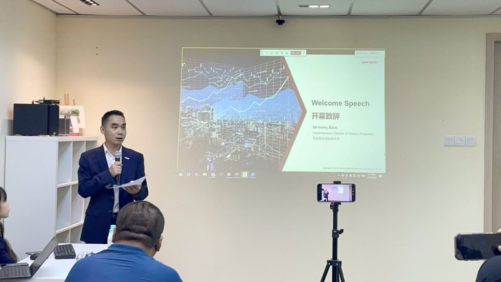 The event began with a welcome speech by Mr. Huang Yunjie, Implementation Director of Yonyou Singapore. He highlighted that as more enterprises expand into Southeast Asia—particularly Malaysia—challenges in digital transformation, cross-border financial security, and local compliance have become increasingly prominent. In the journey toward internationalization, enterprises must build intelligent operational systems to adapt to the rapidly changing market landscape.