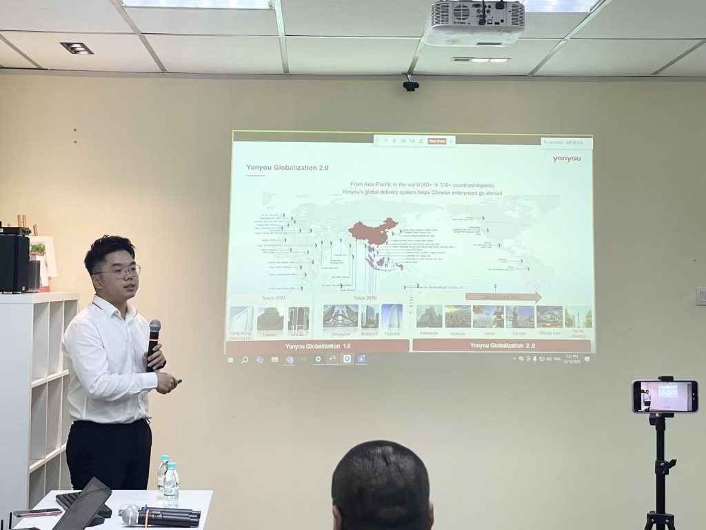 Next, Mr. Wu Guowen, Sales Manager of Yonyou Singapore, delivered an in-depth presentation on how Yonyou’s Enterprise AI Platform enables businesses to achieve intelligent operations and data-driven decision-making across three key domains — finance, human resources, and supply chain. Leveraging AI and automation capabilities, enterprises can gain greater efficiency and precision in managing operations, helping them establish a strong foothold in overseas markets.